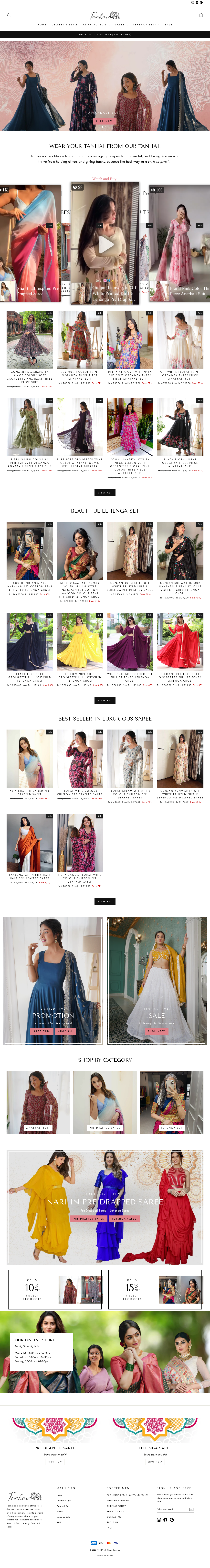 Tanhai is the ultimate online shopping store for Indian ethnic wear offering unique collection of Designer sarees, Salwar kameez, Kurtis, lehengas, bridal wear etc.